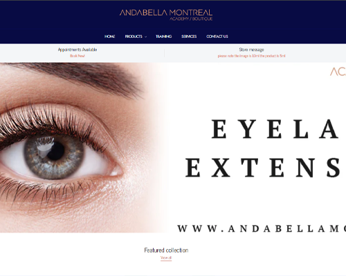 Website for Andabella Montreal - Lashes Products
